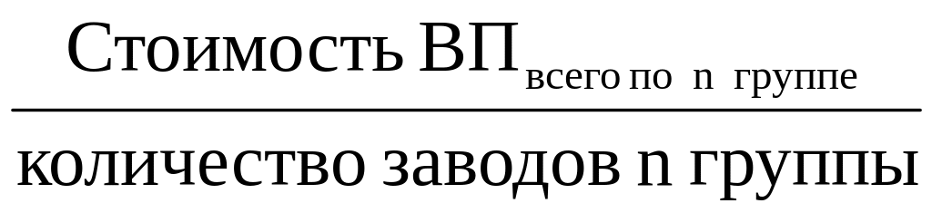 Стоимость ВП в среднем на один завод по каждой группе можно рассчитать аналогичным образом, по общей формуле