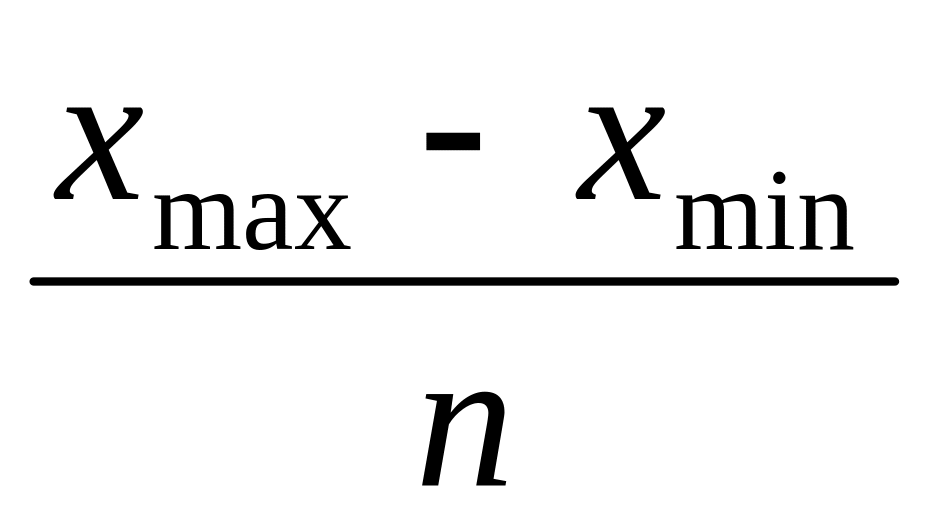 Вычисляем величину интервала (i) при количестве групп (n) равном 5: