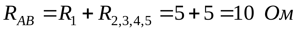 Вычисляем эквивалентное сопротивление схемы:
