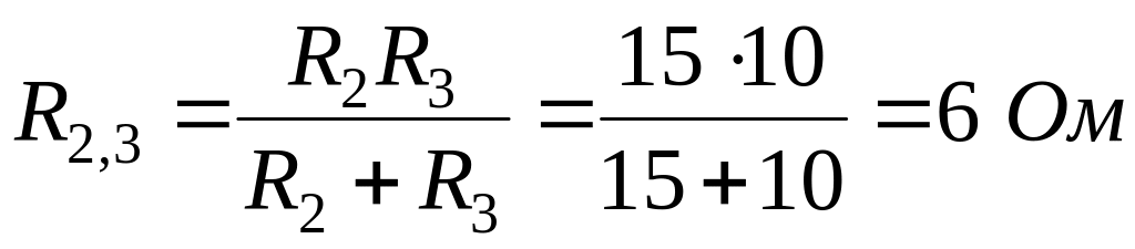 1. Определяем общее сопротивление разветвления R2, R3. Резисторы соединены параллельно, поэтому