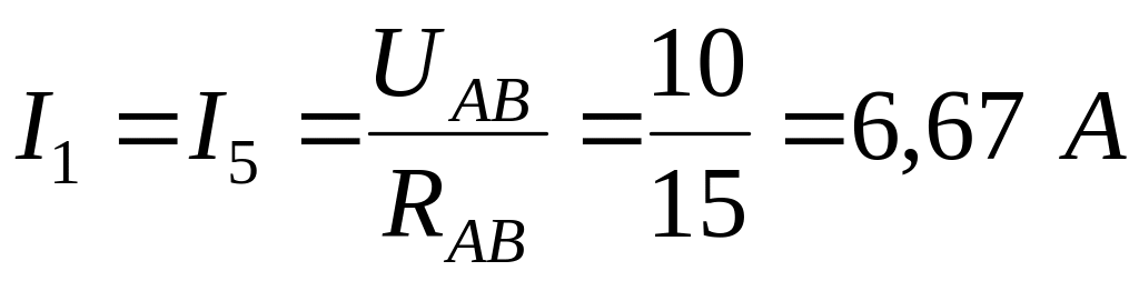 Поскольку напряжение UАВ остаётся неизменным, находим токи I1 и I5: