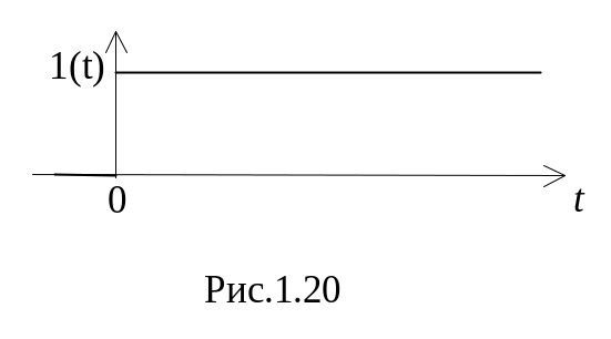Графік даної функції приведено на рис.1.20. Дана функція моделює, наприклад, ступінчате збільшення або зменшення навантаження. Дана функція також може моделювати ступінчату зміну вхідного діяння (див. рис.1.21) при дослідження динамічних властивостей системи автоматичного регулювання.