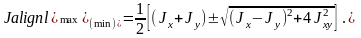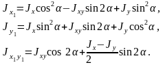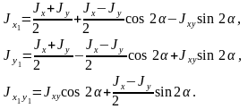 Более распространенная формула для главных моментов инерции получается после исключения угла a из системы (9.9') с учетом справедливого для главных осей условия После преобразований она записывается следующим образом:
