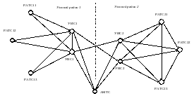На рисунке 13 показана звездообразная топология связи МКД и ТК, но на уровне транспортной сети (ТК1-ТК4) организуются два независимых (для обеспечения требуемой живучести) пути передачи информации между этими узлами коммутации пакетов. Все ТК связаны с магистральным коммутатором (МК), который обеспечивает выход к междугородной и международной сетям, то есть является аналогом АМТС. В результате создана трехуровневая сеть (МКДТКМК).