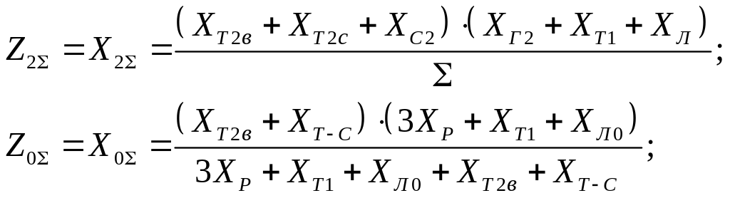 Первым этапом расчёта любого несимметричного режима методом симметричных составляющих является составление схем замещения прямой, обратной и нулевой последовательностей. Преобразуя эти схемы находят суммарные сопротивления всех последовательностей. Из схемы прямой последовательности определяют суммарную ЭДС.