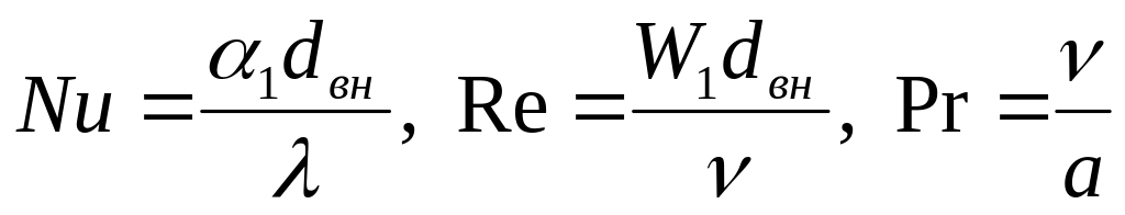 Коэффициент теплоотдачи от воды к внутренней поверхности стенки трубы 1 определяют по критериальному уравнению для турбулентного режима течения жидкости внутри трубы (при Rе>104):