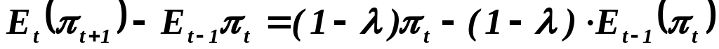 Действительно, если в текущем периоде t темп инфляции оказался недооценен, т.е. t > Et-1(t), то ожидания на периоде t+1 будут пересмотрены в сторону повышения по сравнению с ожиданиями на период t. Напротив, если в периоде t фактический темп инфляции оказался ниже ожидаемого t < Et-1(t), то ожидаемый темп инфляции сократится по сравнению с его текущим уровнем. И только в том случае, если в периоде t прогноз оказался безошибочным, t = Et-1(t), оснований для пересмотра ожиданий не возникает.
