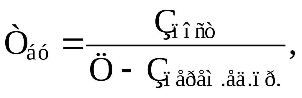 Еще одним важным показателем (методом) экономической эффективности инновационного проекта является точка безубыточности (Тбу). Она показывает тот объем производства, по достижении которого происходит компенсация постоянных и соответствующих ему (объему) переменных затрат. Аналитически точку безубыточности рассчитывают по формулам: