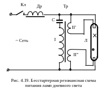 - •4.8.2. Электрические схемы питания ламп дневного света