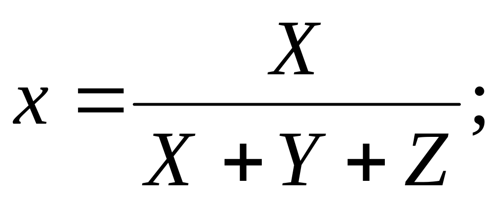 где X(λ), Y(λ), Z(λ) – абстрактные компоненты света; x, y ,z – доля этих компонент в спектре излучения.