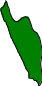 Рис. Модель Качканарского рудного поля. Рудные тела (заштрихованы в клеточку) приурочены к пироксенитам (синее), зеленое - габбро. Западное тело пироксенитов массив образует Собственно Качканарское месторождение, восточное – Гусевогорское
