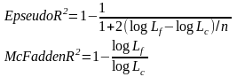 Уравнение правдоподобия является системой нелинейных (относительно b) уравнений и решается обычно итерационными методами. Для пробит- и логит-моделей данная функция является вогнутой по b, следовательно, решение уравнения правдоподобия дает оценку максимального правдоподобия параметров bi. Унифицированного, как в линейной регрессии R2, показателя качества «подгонки» модели не существует. Пусть, log Lf - значение функции правдоподобия исходной модели, log Lc -значение функции правдоподобия той же модели с нулевыми параметрами, но с константой. Чем больше их разность, тем лучше должна быть модель. На этой идее основаны нижеследующие показатели качества модели: