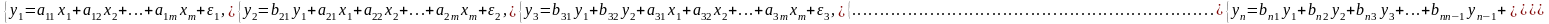 В системе взаимозависимых уравнений одни и те же зависимые переменные y в одних уравнениях входят в левую часть, а в других уравнениях – в правую часть системы: