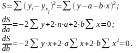 Задание: оценить с помощью МНК параметры линейного уравнения регрессии, найти выборочный коэффициент корреляции .