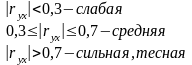 По абсолютной величине, чем ближе значение rxy к единице, тем теснее связь, чем ближе значение rxy к нулю, тем слабее связь между y и x.