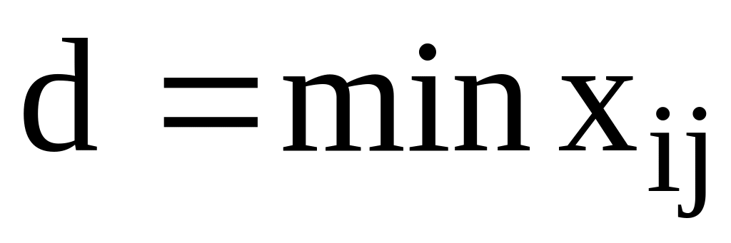 В выбранную для заполнения свободную клетку (i0,j0) заносится значение d. Одновременно это число прибавляется к значениям перевозок, стоящих в клетках со знаком «+», и вычитается из значений перевозок, стоящих в клетках со знаком «-». Т.о. клетка (i0,j0) становится занятой, а i1j1 - свободной.
