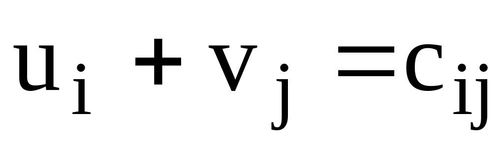 Затем определяем потенциалы пунктов отправления и потенциалы пунктов назначения. Для этого составляем уравнения для занятых клеток таблицы: