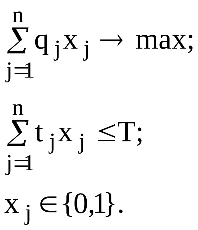Тогда математическую модель задачи можно сформулировать как одномерную задачу о ранце: