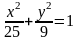 Үлкен жарты осі 5-ке және кіші жарты осі 3-ке тең болатын эллипстің теңдеуі: