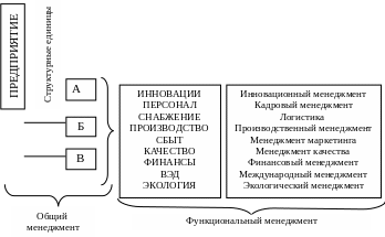 и функциональный (специальный) менеджмент, заключающийся в управлении определенными сферами деятельности организации или ее звеньев(рис.).