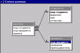 Соответственно, таблицы Оценки и Студенты связаны по полю код студента, а таблицы Оценки и Предмет связаны по полю код предмета.