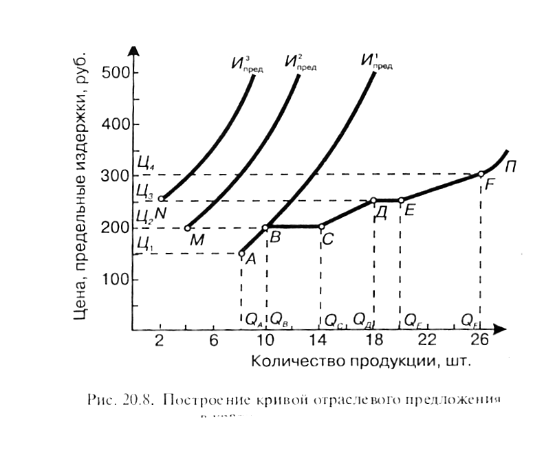 Изменение спроса. Сокращение спроса вызовет понижение цены, на которое предприятие среагирует путем перемещения вниз по кривой краткосрочных предельных издержек, что будет означать сокращение масштабов производства в интересах минимизации убытков. Все это приведет к сокращению производства и падению доходов. Размеры выпуска у отдельных предприятий окажутся недостаточными для покрытия альтернативных издержек, связанных с авансированием инвестиций. Поэтому, если величина рыночного спроса не восстановится в первоначальном размере, то многие предприятия покинут отрасль. Бегство капиталов и банкротство приведут к сокращению предложения. В основном останутся предприятия, типичные для каждой отрасли. Сокращение предложения приведет к восстановлению первоначального уровня цен, что позволит типичным предприятиям подняться по кривой предельных издержек вверх, расширить производство и преодолеть убытки. В рез-тате рынок вернется в состояние долгосрочного равновесия. В случае расширения спроса произойдет повышение уровня цены. Это вызовет рост получаемой экономической прибыли, которая станет приманкой для капиталов из других отраслей. Все это обусловит рост предложения, а за ним последует снижение цены до прежнего уровня. Равновесие установится путем сокращения производства типичными предприятиями и выбытия из отрасли неэффективных хозяйственных единиц.