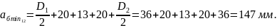 Определяем минимальное межосевое расстояние, которое дает возможность разместить в корпусе подшипники качения валов передачи с возможной установкой между подшипниками качения болта крепления крышки и корпуса редуктора (при плоскости разъема корпуса по оси валов)