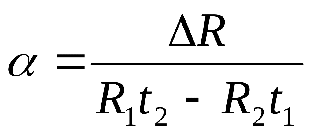 Опытным путем можно определить α, не прибегая к измерению сопротивления Ro. Для этого необходимо дважды измерить сопротивление исследуемого материала R1 и R2 при разных температурах t1 и t2. Зная, что R1 =R0(1 + αΔt), R2= R0(1+ αΔt), можно найти отношение R1/R2, а затем и α: