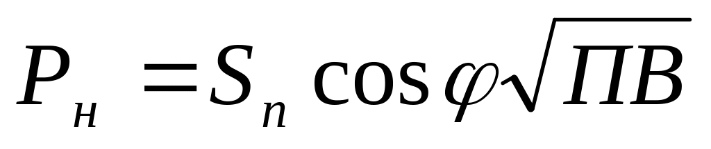 где Рн , Рп — приведенная и паспортная активная мощность, кВт;