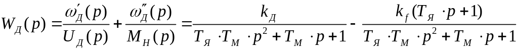 Тогда, для двигателя постоянного тока, имеющего входы по управлению и по возмущению, можно определить две передаточные функции
