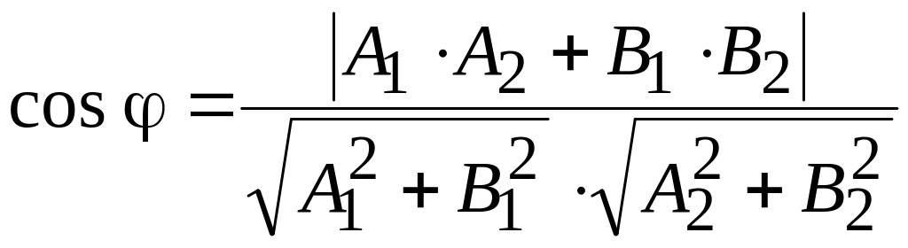 Если прямые заданы общими или каноническими уравнениями, то задача об определении угла между прямыми сводится к определению угла между нормальными или направляющими векторами: