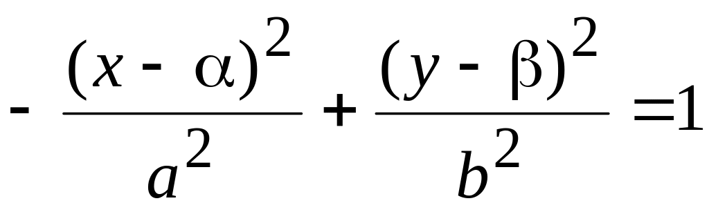 Уравнения гиперболы с центром (, ) и полуосями a и b |