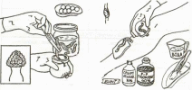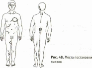 5. Взять пиявку пинцетом и поместить в банку хвостовой частью. Поднести к месту прило- жения банку с пиявкой, направить пиявку к соответствующей точке. |