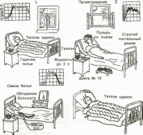 1. Измерять температуру тела каж- дые 2-3 часа. |
