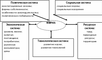 Фирма как экономический агент не обособлена от общественных процессов. Хотя на нее в первую очередь оказывают влияния экономические процессы и отношения, в то же время она взаимозависима от внешней среды и взаимодействует с ней.