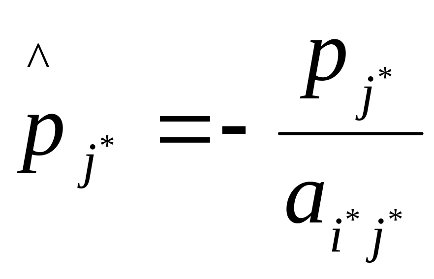 остальные элементы разрешающего столбца и разрешающей строки делят на разрешающий элемент со знаком «-» для элементов разрешающего столбца и со знаком «+» для элементов разрешающей строки, то есть