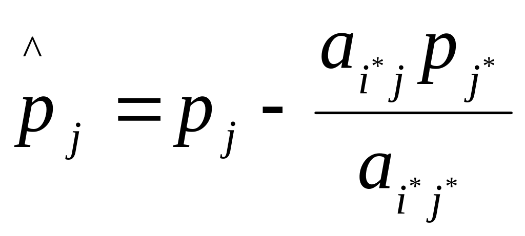 в) элементы симплекс-таблицы, не принадлежащие разрешающей строке и разрешающему столбцу, пересчитываются следующим образом - из элемента вычитается произведение соответствующих элементов из разрешающей строки и разрешающего столбца, деленное на разрешающий элемент: