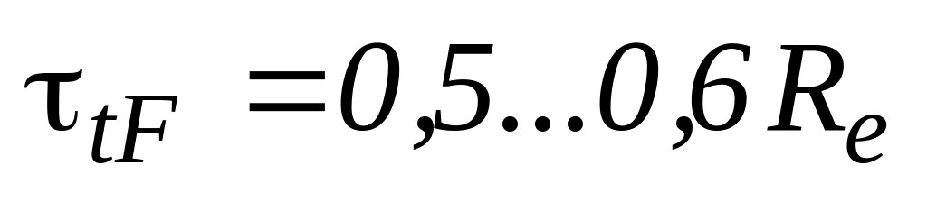 = пределу текучести (≈ границе упругого растяжения). Для стали – вплоть до значения = 600 Н/мм2 и холоднокатаных металлов, =0,6…0,8 . = пределу текучести 0,2%. Для металлов без четко выраженного предела текучести, таких как сталь с ≥ 600 Н/мм2, для Cu и Al . |