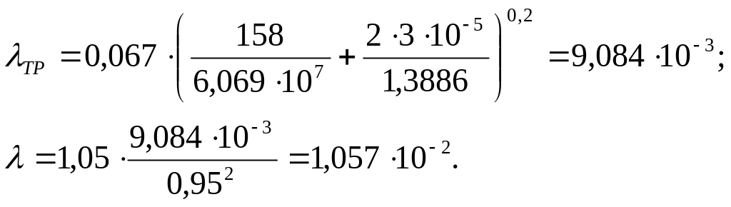 3.4. Полагая, что газопровод будет оборудован устройствами для очистки внутренней полости (Е1=0,95), коэффициент гидравлического сопротивления λ по формуле (1.13)