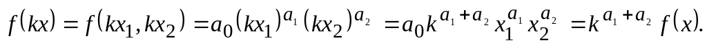 ПФ типа Кобба-Дугласа является однородной функцией порядка a 1+ a 2. ◄
