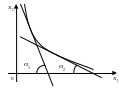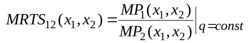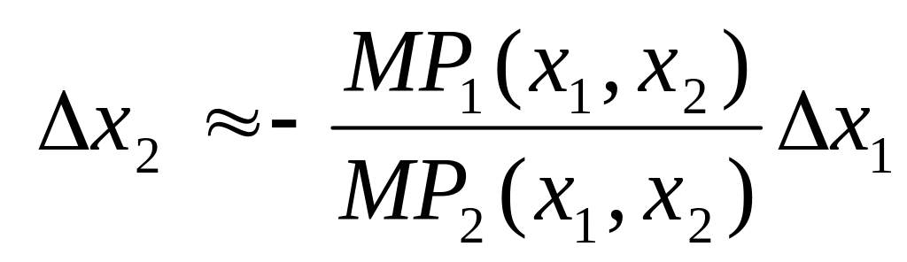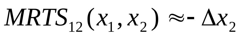 Геометрический смысл предельной нормы замещения второго ресурса первым: численно равна тангенсу угла наклона касательной к изокванте в точке (x1,x2), взятому с обратным знаком.