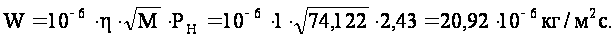 Плотность насыщенного пара при расчетной температуре: