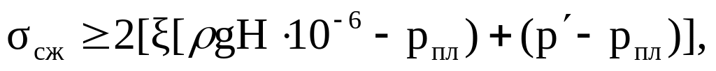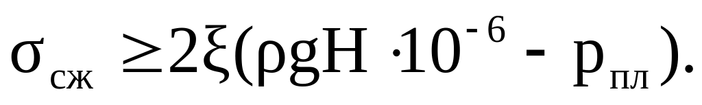ρi – плотность горных пород i-го пласта, кг/м3; hi – толщина i-го пласта, м; n - число пластов; - коэффициент бокового распора горных пород,