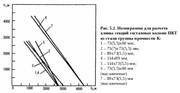 где К2 - коэффициент запаса прочности, К2 = 1,3 - 1,5; qт - масса 1 м труб, кг; g - ускорение силы тяжести, g = 9,8 м/с2; м - плотность материала труб, кг/м3; Qстр - страгивающая нагрузка для резьбового соединения, рассчитывается по формуле Яковлева, Н; т - предел текучести материала труб, Па; lдоп - допустимая глубина подвески труб, м (значения lдоп приведены в табл. 5.1).