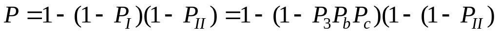 Разделим схему на цепи I и II, а цепь I на участки а, b, с. Тогда с учетом принятых обозначений на основании P1= РаРbРс и на основании