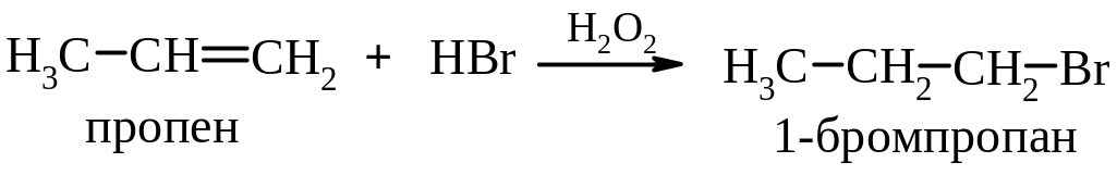 б) проти правила Марковникова (перексидний ефект Хараша):