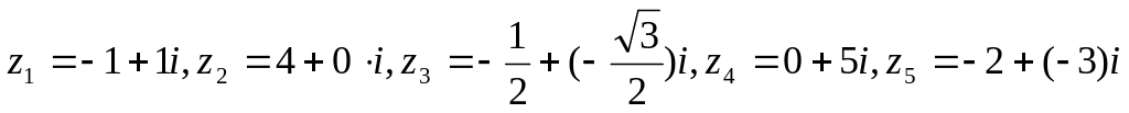 Решение. Запишем числа со строгим указанием действительной и мнимой части: