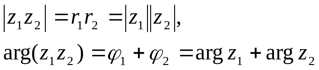 иными словами, при умножении комплексных чисел их модули перемножаются, а аргументы складываются.