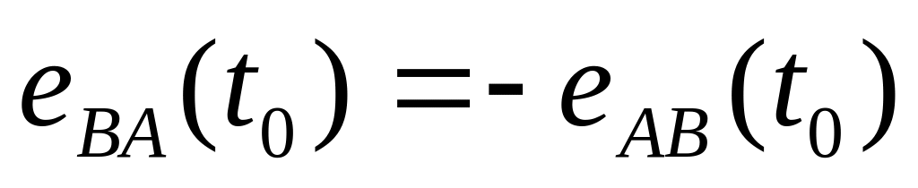 eAB(t),eBA(t0) – ТЕРС, які обумовлені контактною різницею потенціалів і різницею температур кінців провідників А і В.