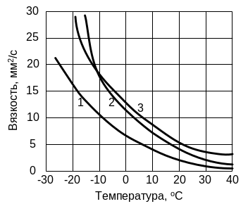 Рис. 3.3. Зависимость вязкости дизельных топлив от температуры: